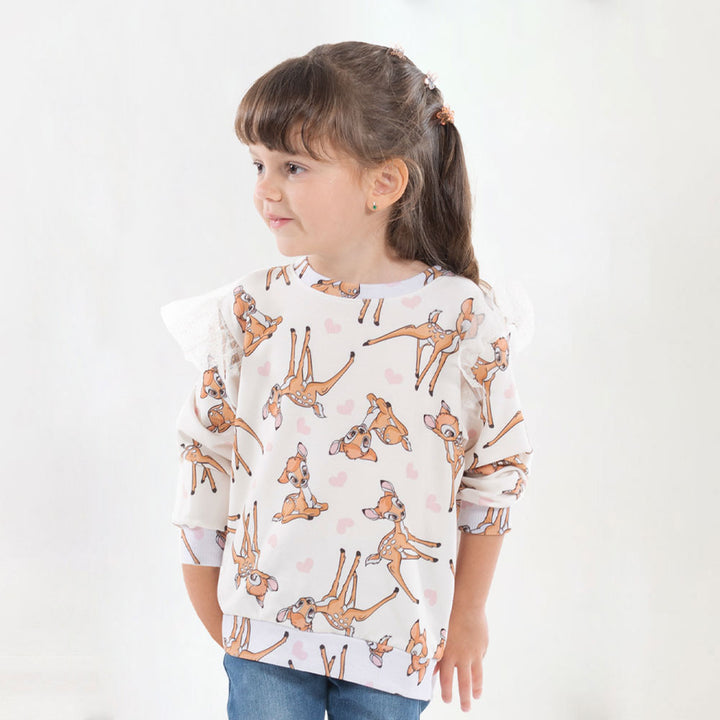 Un buzo de Bambi para bebita sería una opción encantadora y acogedora para agregar a su colección de ropa. Con un diseño dulce y tierno de Bambi y sus amigos del bosque, este buzo está confeccionado con materiales suaves y cálidos para mantener a tu bebé cómoda y abrigada. Cómodo y suave buzo para bebita, color ivory con estampado de Bambi y corazones rosa, cuello redondo, boleros de tul en mangas, puños y cintura en rib. Licencia aprobada por ©DISNEY.