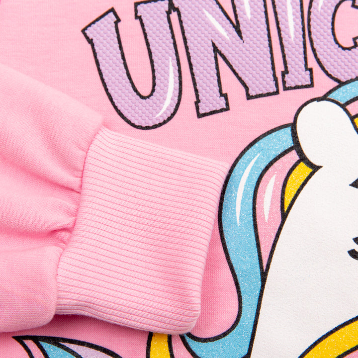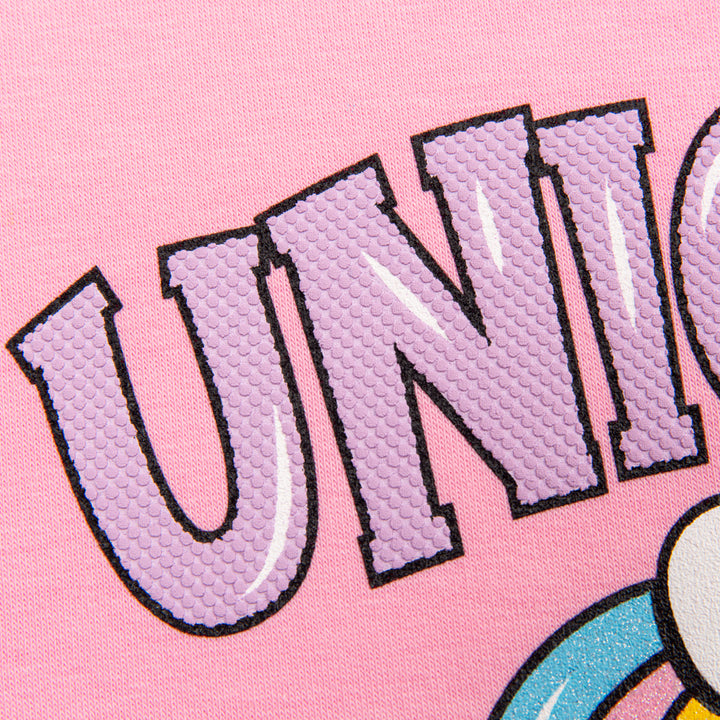El unicornio, símbolo de gracia y belleza, añade un toque de encanto y misterio a esta prenda. Camibuzo para niña, color rosado, estampado unicornio.