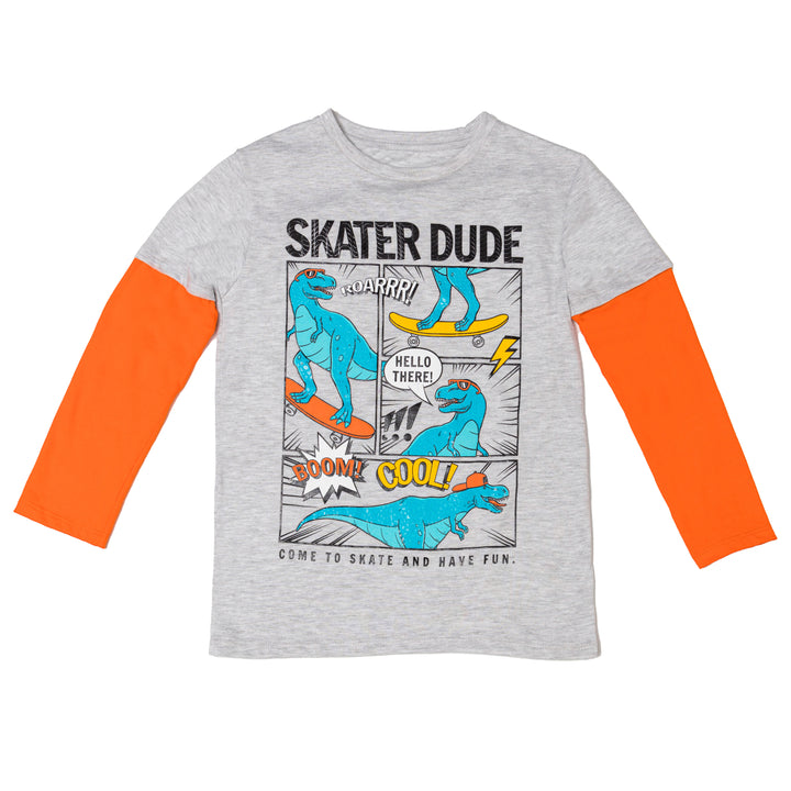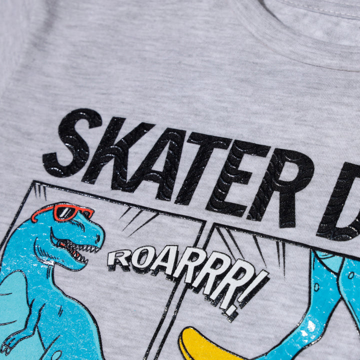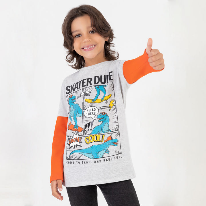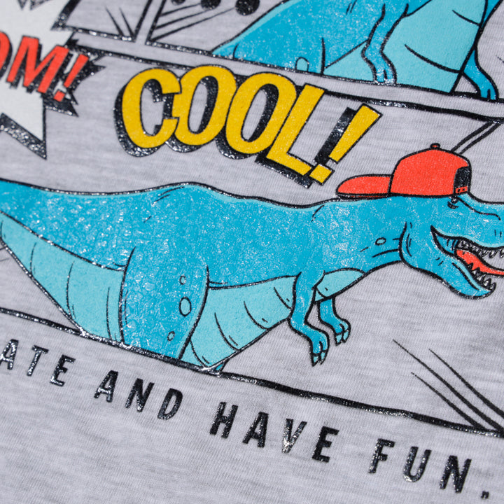 Este camibuzo es perfecto para los pequeños amantes de los dinosaurios y la prehistoria. Con un diseño que presenta a estos gigantes extintos en todo su esplendor, tu niño se sentirá como un auténtico paleontólogo en cada ocasión. Camibuzo para niño, color gris, estampado dinosaurio.