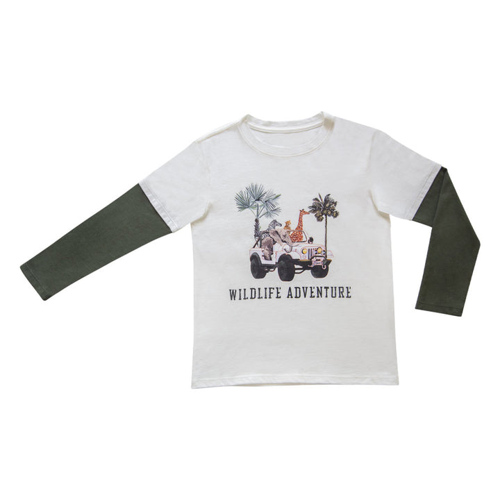Un camibuzo que combina el estilo salvaje de la jungla con la comodidad que tus pequeños necesitan para sus aventuras diarias. Con estampados inspirados en la vida salvaje y tejidos de alta calidad, este camibuzo es perfecto para explorar el mundo con energía y estilo.