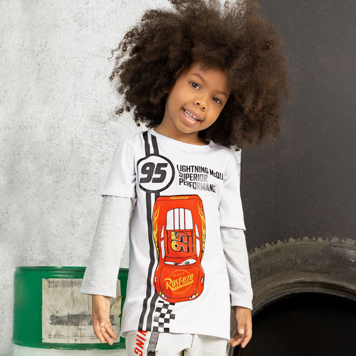 Lleva la emoción de Cars a la pista con nuestro camibuzo inspirado en Rayo McQueen y sus amigos! Este camibuzo es la elección perfecta para los pequeños fanáticos de las aventuras automovilísticas. Camibuzo larga para niño, color blanco, Licencia aprobada por ©DISNEY.