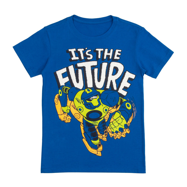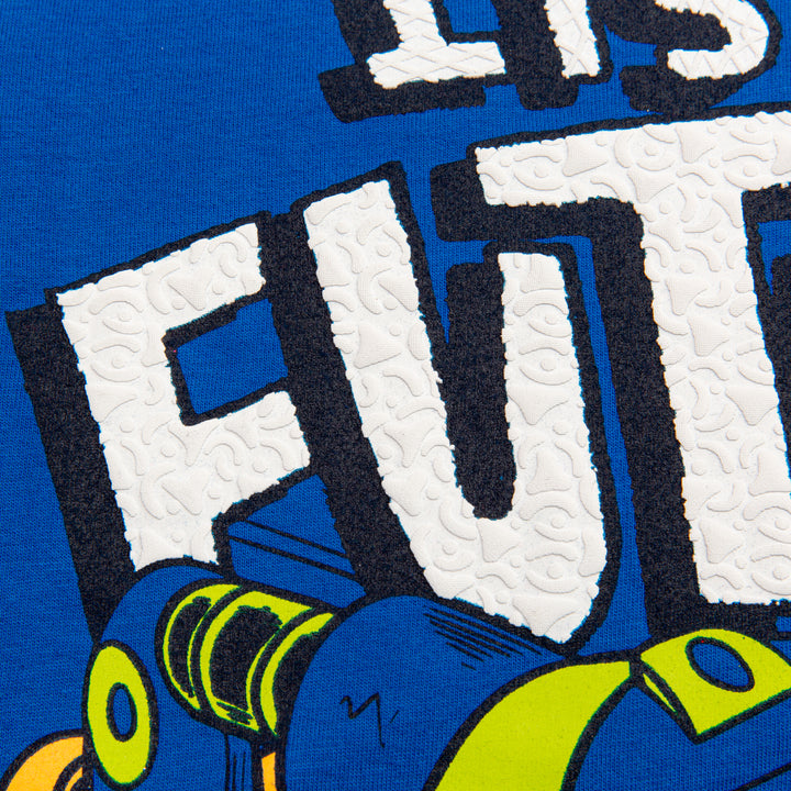 Una camiseta versátil para los pequeños aventureros. Nuestra camiseta para niños es perfecta para cualquier ocasión. Con un diseño futurista y cómodo, esta camiseta es la elección ideal para explorar el mundo. Camiseta manga corta niño, color azul, estampado futurista.