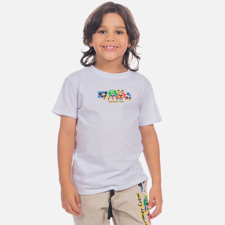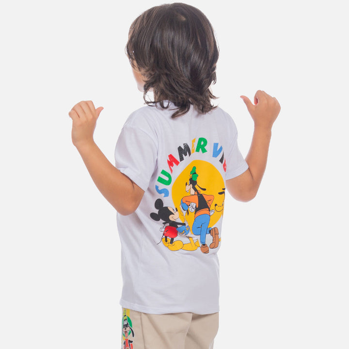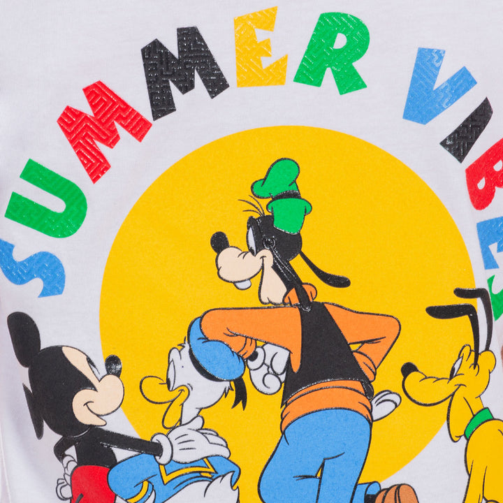 Camiseta blanca de Mickey y sus amigos para niño sería una elección clásica y divertida para su guardarropa. Esta camiseta presenta estampados de Mickey Mouse, Minnie Mouse, Donald Duck, Goofy y otros amigos del universo Disney, creando un ambiente alegre y lleno de diversión, Licencia aprobada por ©DISNEY.