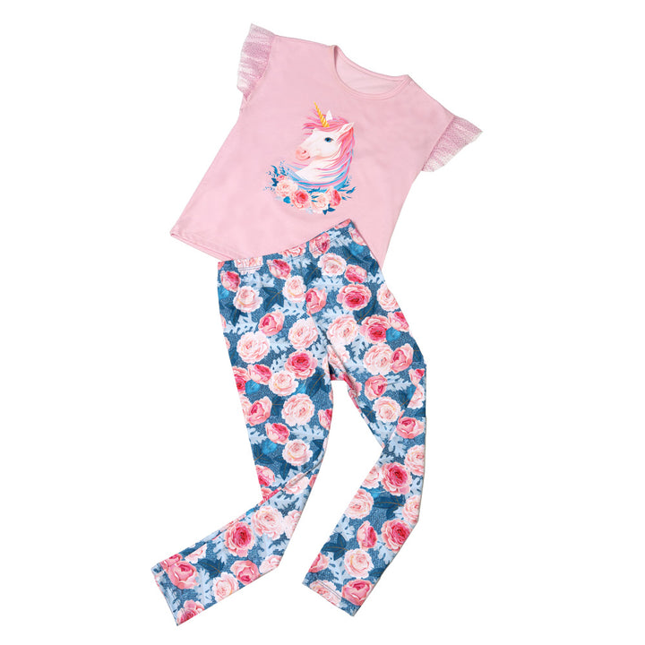 Este conjunto es perfecto para las niñas que adoran los cuentos de hadas y la fantasía. Con un diseño que presenta hermosos unicornios y detalles mágicos. Conjunto largo para niña, color rosado, estampado unicornio.