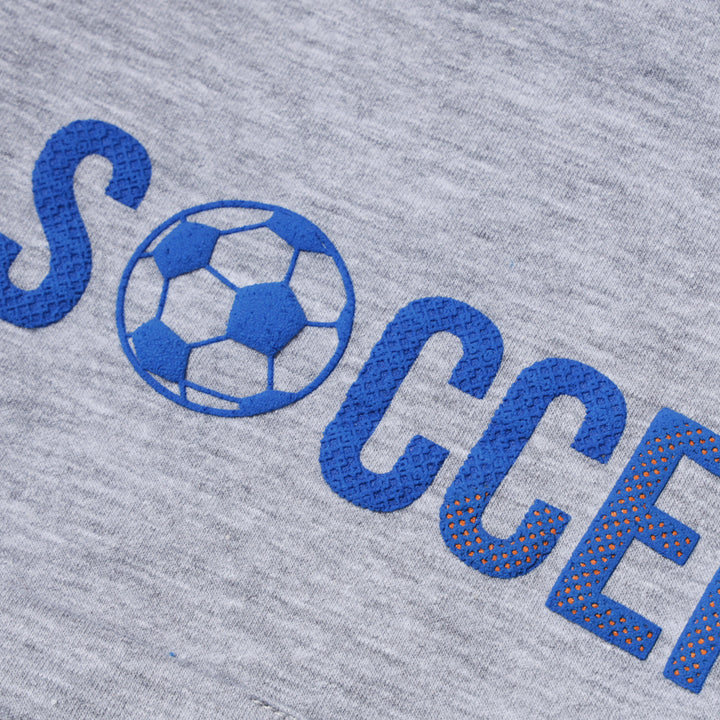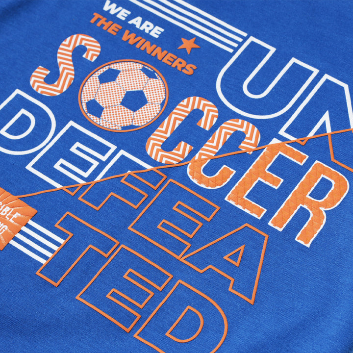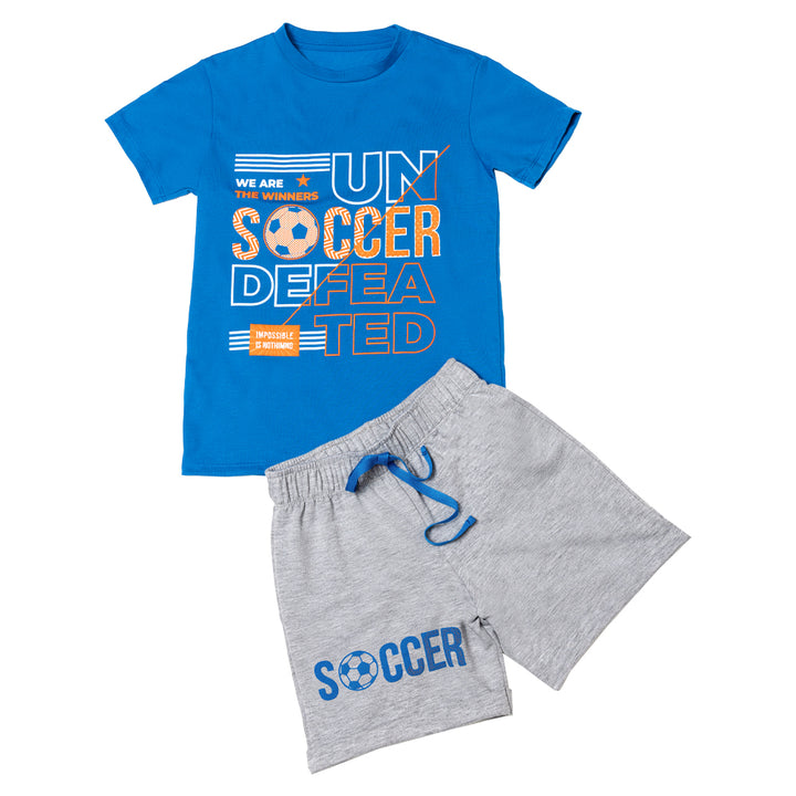 Fabricado con materiales de alta calidad y transpirables, este conjunto ofrece comodidad y durabilidad durante toda la temporada. Deja que la pasión y el espíritu deportivo del fútbol se reflejen en su estilo con este conjunto que celebra la emoción del juego. Conjunto para niño Camiseta corta + pantalón corto, color azul. Estampado futbol.