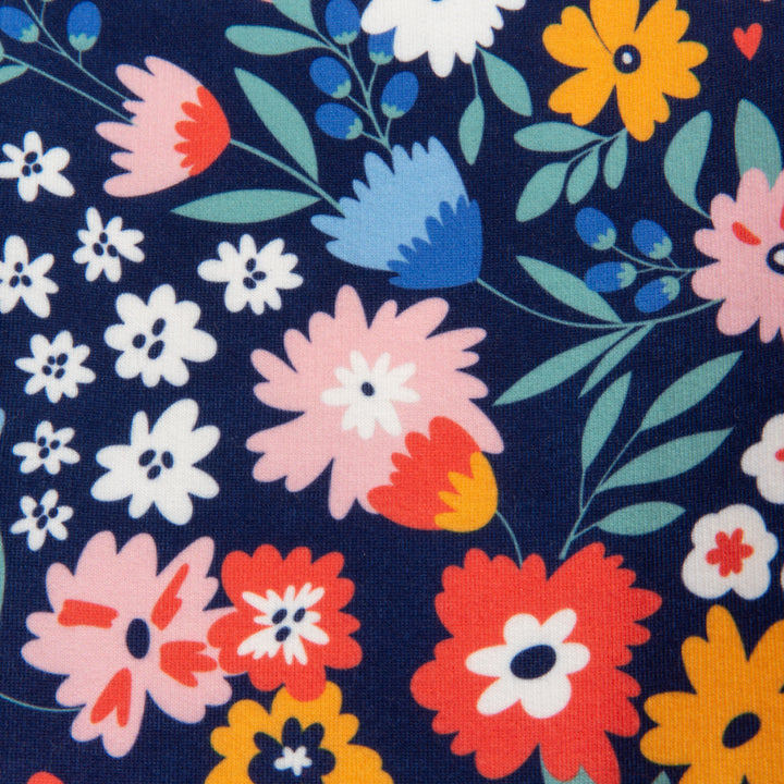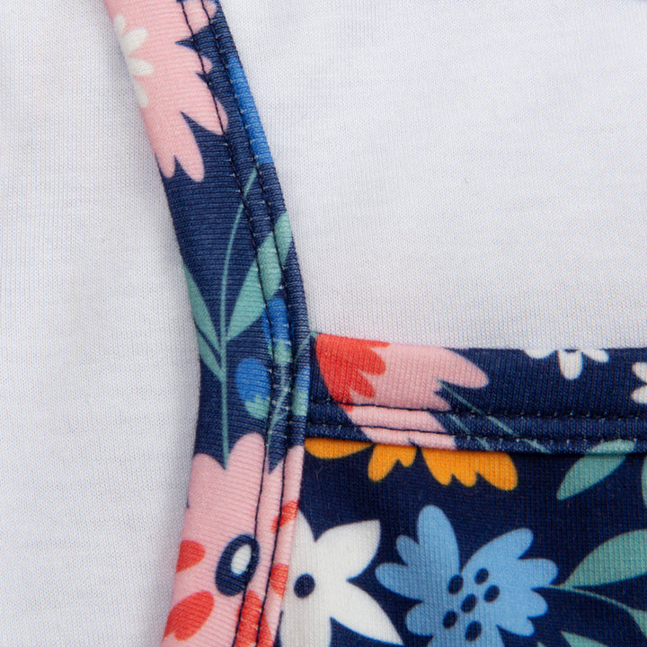La comodidad es clave, y este enterizo está confeccionado con tejidos suaves y ligeros que permiten que tu pequeña se mueva con libertad. Enterizo para niña, color azul, estampado floral.