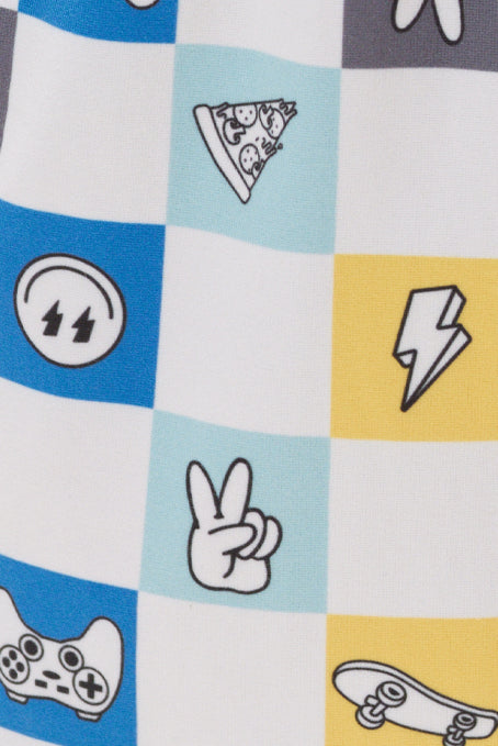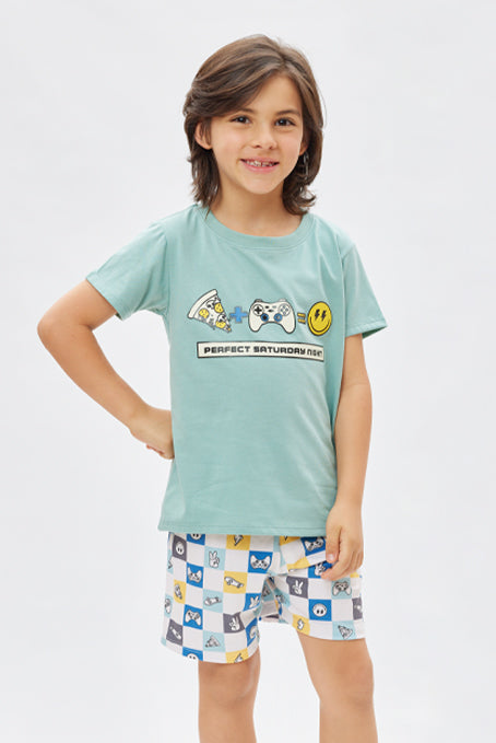 Haz que la hora de dormir sea aún más divertida con esta pijama para niño, compuesta por una cómoda camiseta de cuello redondo y un short a juego. Ambos están decorados con un divertido estampado que seguramente encantará a tu pequeño.