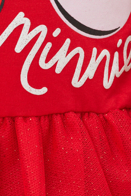 Este vestido presenta el clásico estilo de Minnie Mouse con un toque vibrante en el color rojo, que evoca la alegría y la diversión asociadas con este personaje icónico de Disney, Licencia aprobada por ©DISNEY.